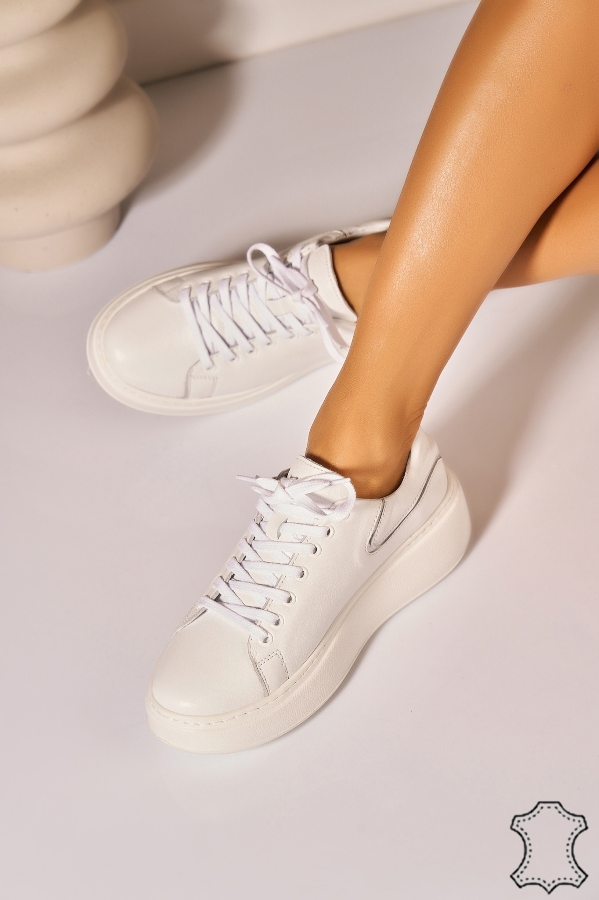 Adidasi Piele Naturala Albi Auryn