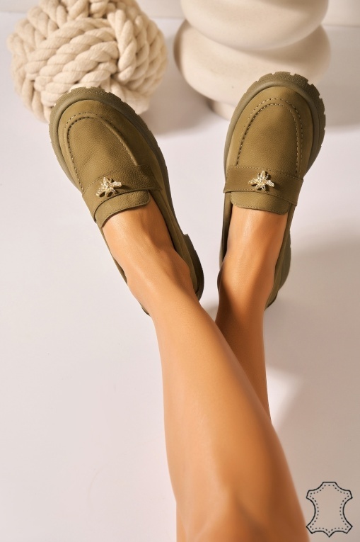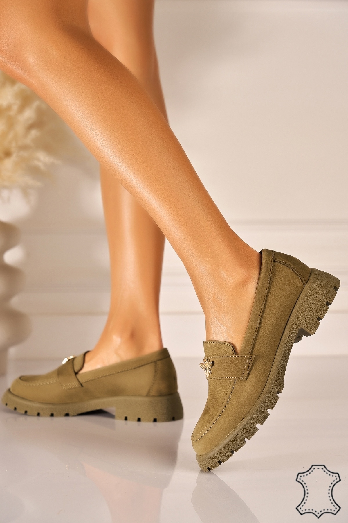 Mocasini dama Piele Naturala Intoarsa Verzi Inori2